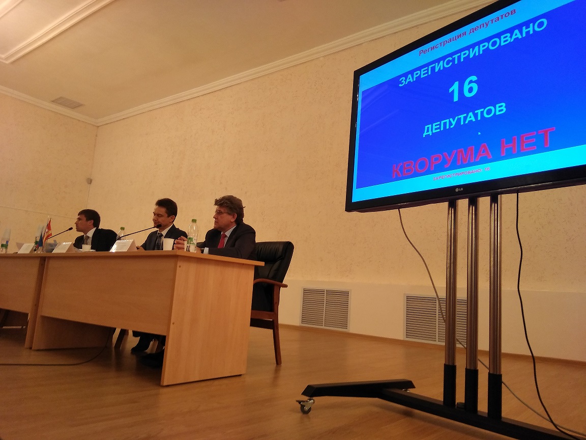 голосования. После чего зал покинул Валерий Фролов и ещё пять депутатов. В зале