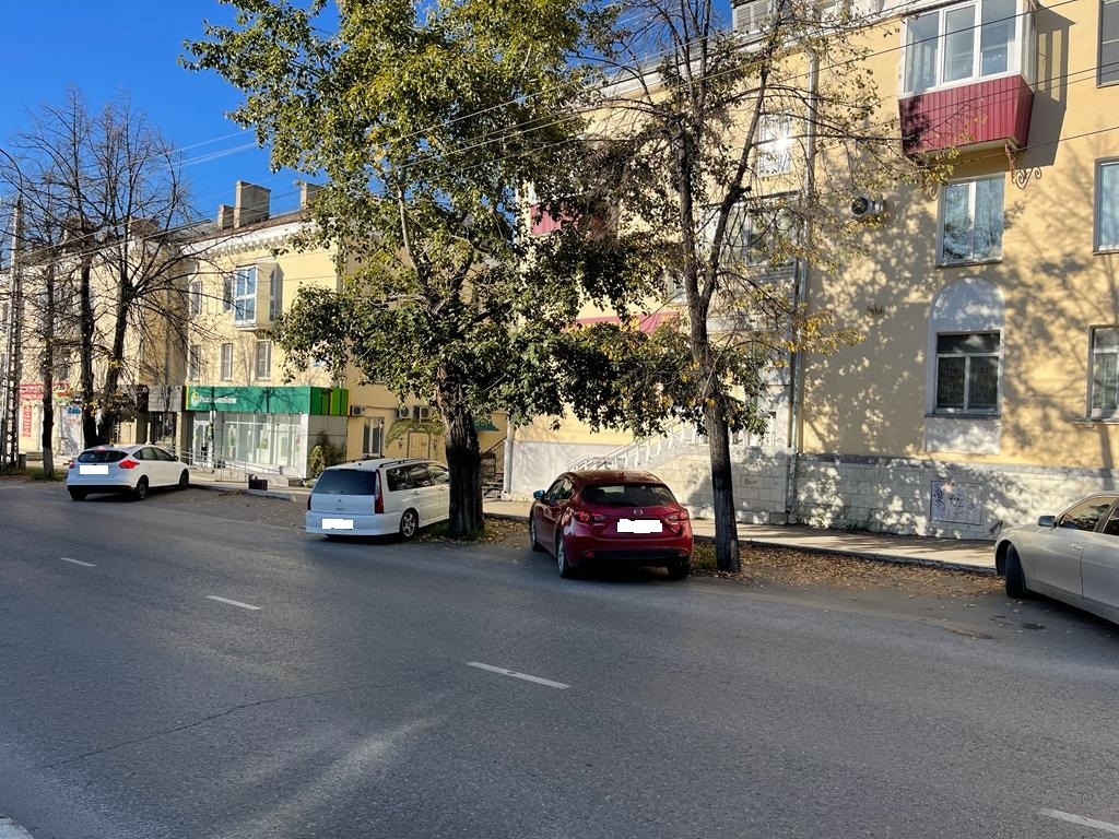 На всём его протяжении организованы парковочные карманы, но машиноместа в некоторых из них занимают старые деревья.