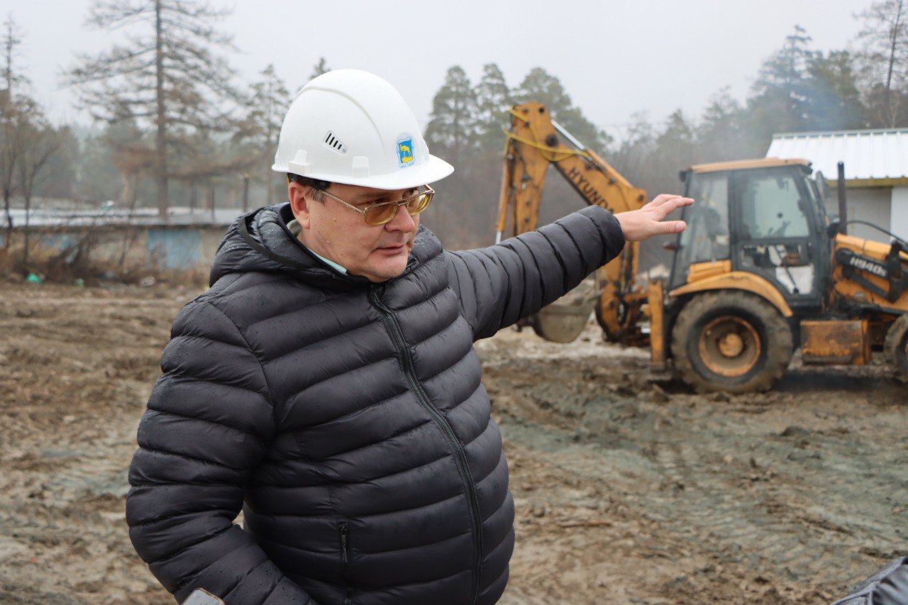Сегодня директор МКУ «Комитет по строительству» Олег Карпов провёл рабочий визит на строительную площадку очистных сооружений в посёлке Хребет. Здесь полным ходом идут подготовительные работы к благоустройству площадки.