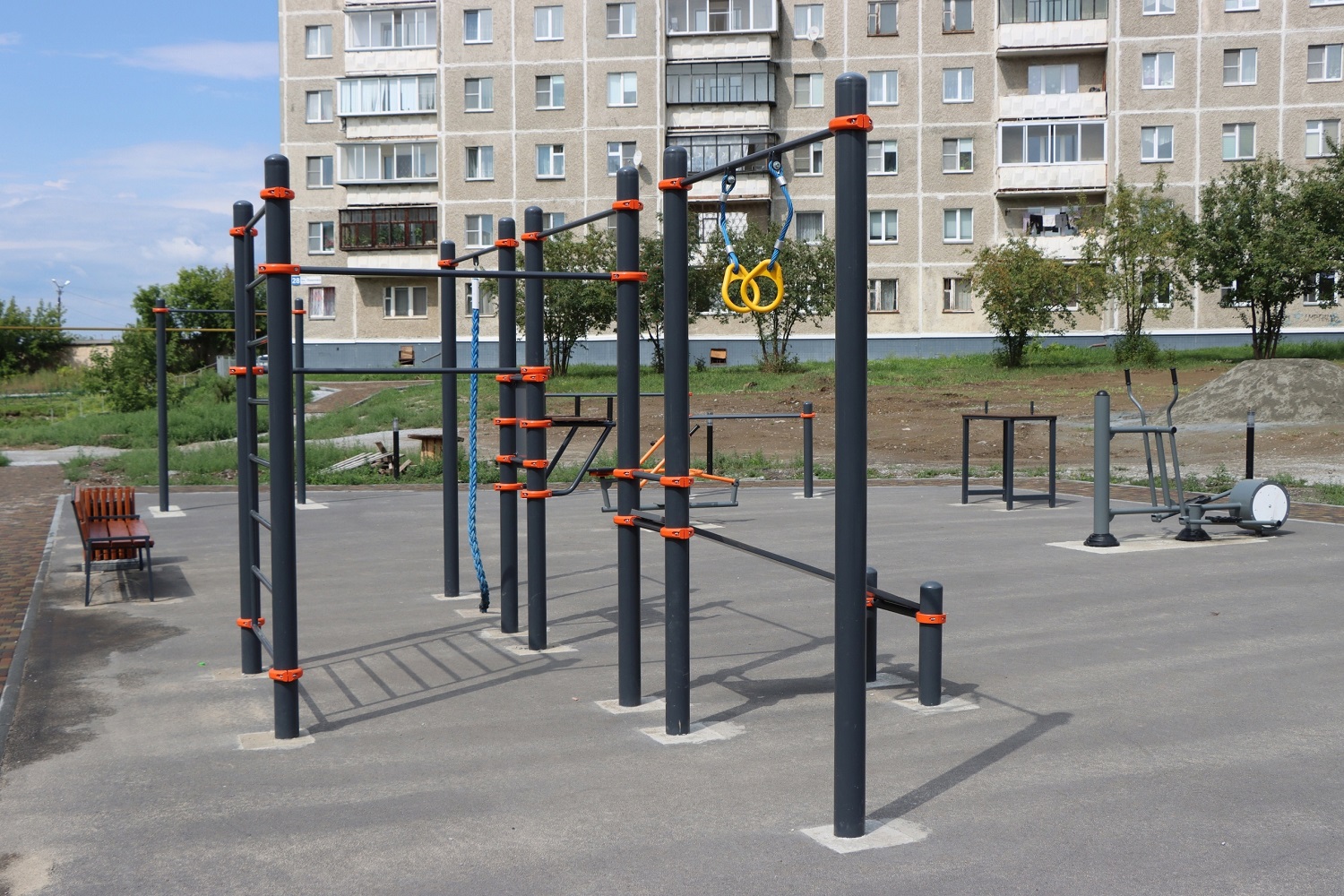 На втором этапе были сформированы газоны, высажены деревья, установлено освещение, современный игровой комплекс, МАФы, качели, игровой стол «шахматы», лавочки, урны, новые тренажеры, баскетбольная и волейбольная площадки и второй в городе «сухой» фонтан. Для наглядности пешеходный фонтан был запущен в тестовом режиме. Уже в следующем году, с наступлением тепла, он начнёт полноценно работать.