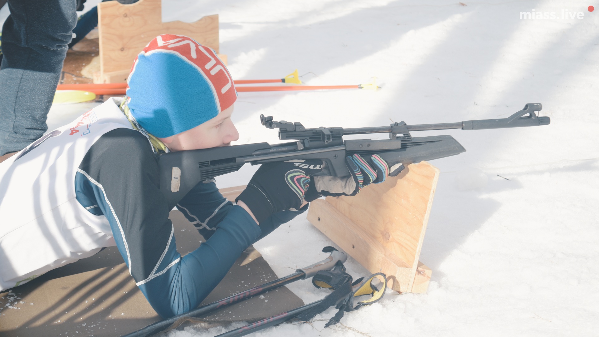 мишени из положения лёжа. Если все мишени были закрыты, спортсмены продолжали