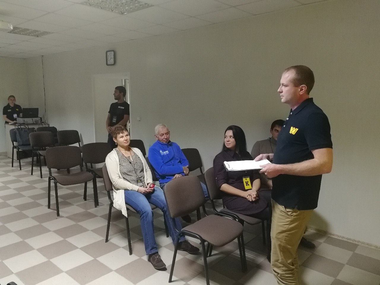 Два раза в неделю участники проекта собираются в конференц-зале Технопарка (бизнес-дом «Спиридонов», цокольный этаж), и учатся чему-то новому. Мы решили посетить занятие и понять на собственном опыте, что такое интеллектуальная тренировка. После зарядки участники разбились на две группы и начали отрабатывать навыки коммуникации и красноречия. Нам выпало задание в течение минуты рассказывать о таком понятии как «злорадство».