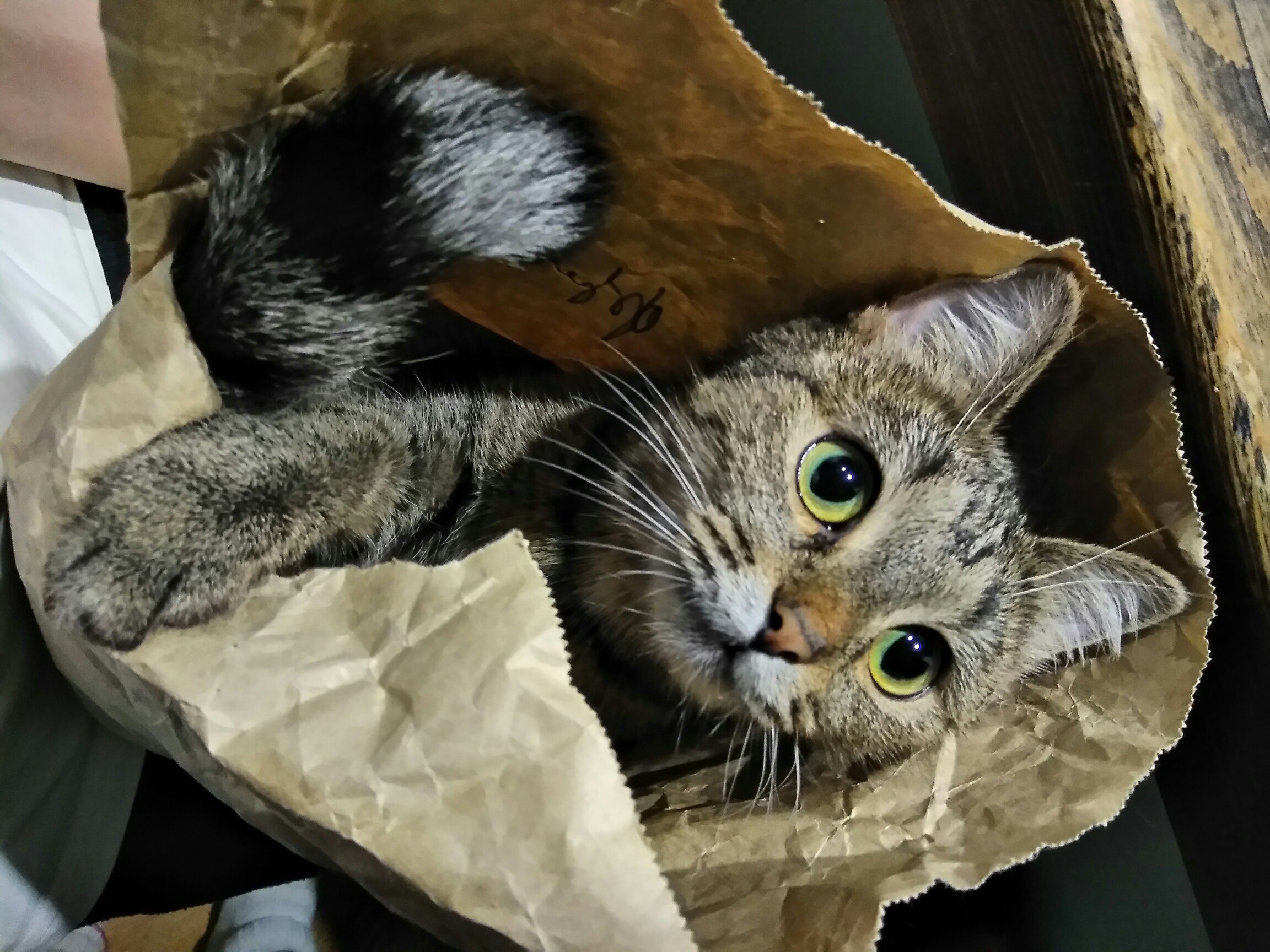 Это было утро майского выходного в 2016 году. Я мирно спал до обеда. Открылась входная дверь, на пороге были мои жена и дочь. Дочка заигрывающим голосом начала что-то про то, что «папа у нас есть сюрпризик». «Сюрпризиком» оказался маленький котёнок, который увязался за ними от лужайки у ДК «Автомобилестроителей». Котёнку явно было меньше месяца, и по ней было видно, что на улице она оказалась недавно. У неё только-только открылись глаза, умещалась на ладони. Было принято решение оставить котёнка на время и подыскать ему хозяев. Вариант оставить кошку у нас мы даже не рассматривали, потому что у дочери была аллергия.