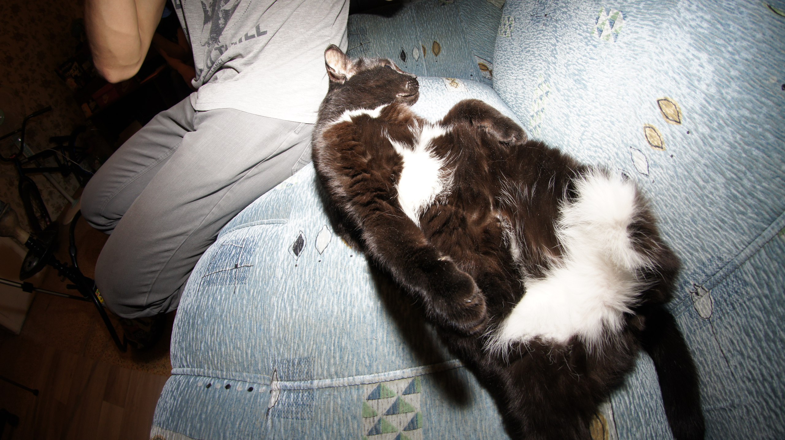 Бабушка переехала в другой город, а Котя остался жить со мной. Теперь он весит как мешок картошки. Всё время лезет ласкаться, а отсутствие задней лапы не мешает ему бегать по квартире и сносить всё на своем пути. У меня аллергия на кошачью шерсть, но я всё равно буду всегда любить этого шерстяного жирдяя.