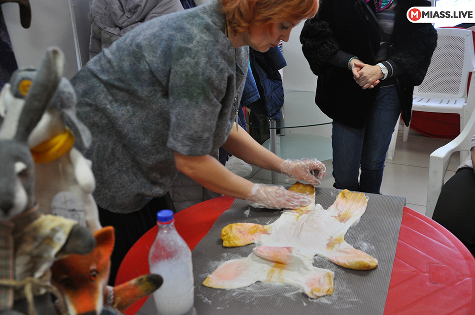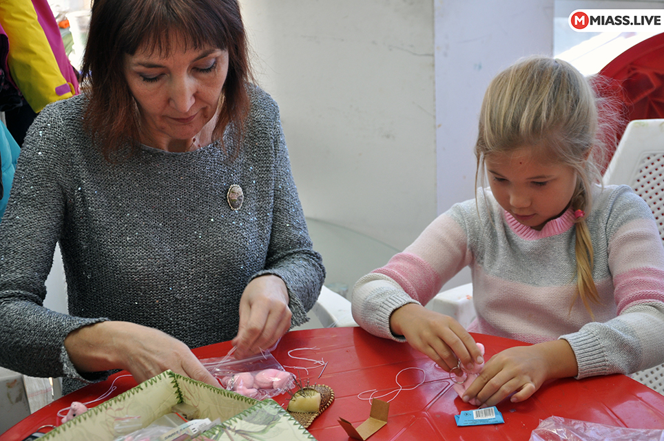 Во второй день ярмарки кроме обычных мастер-классов проходили мастер-шоу. Алёна Новосёлова на глазах посетителей из клубка шерсти создала заготовку для мягкой игрушки. А Ольга Чернеева провела показательный мастер-класс по вышивке лентами.