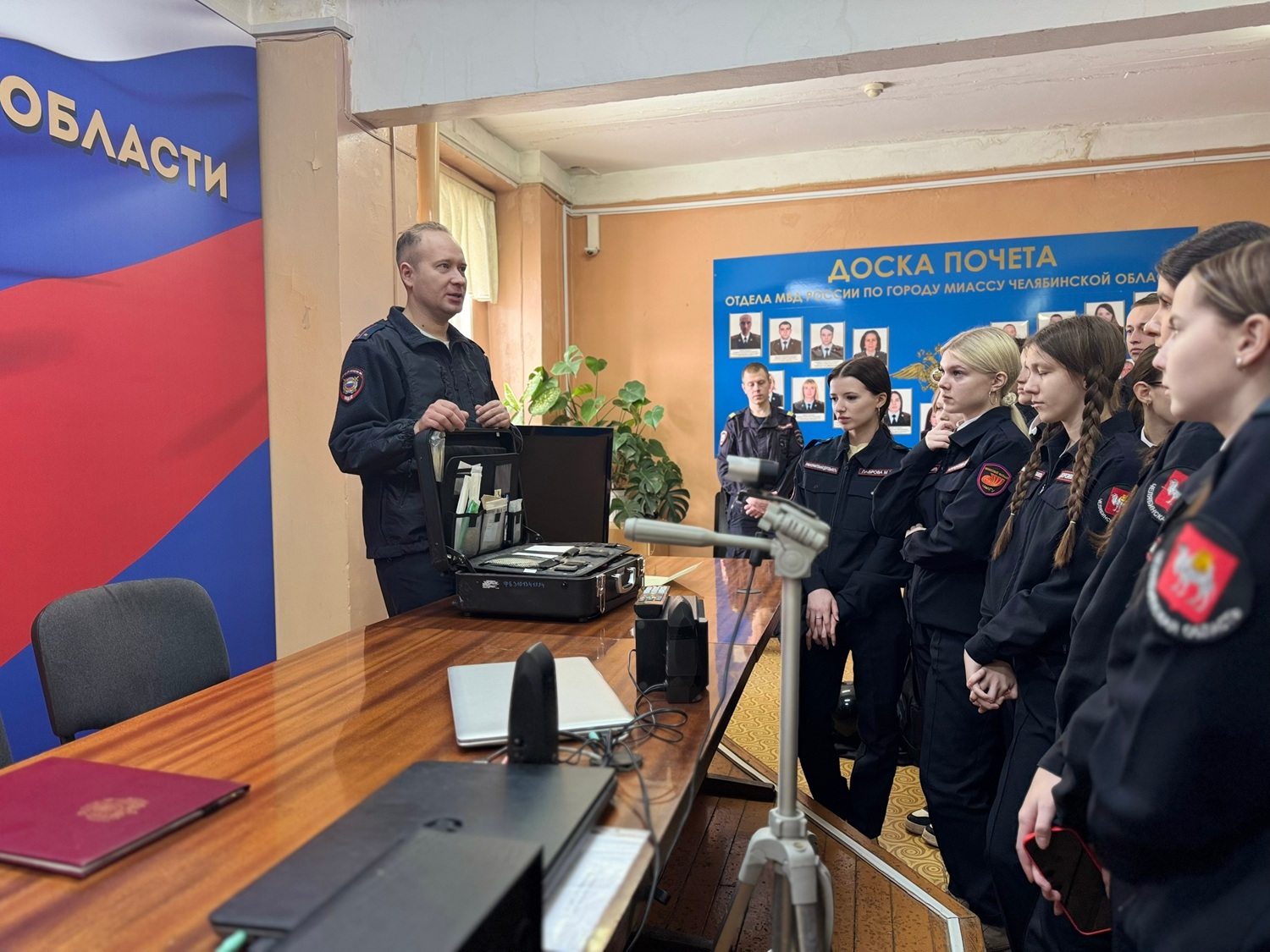 Программа встречи также включала экскурсию по отделу, в ходе которой студенты смогли ближе познакомиться с повседневной работой полицейских.