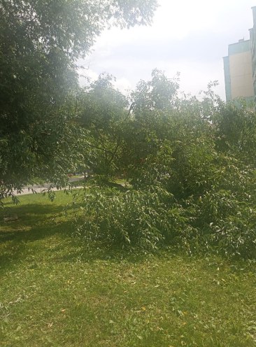 «По улице Попова, 8 сломался ствол дерева, а тяжёлые ветки склонились на часть парковочных мест».