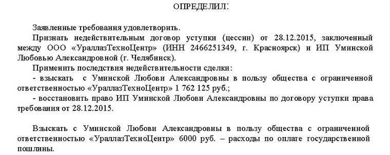 При этом сам Уминский пытался уйти от ответственности, фактически «переписав» компанию «УралазТехноЦентр» на некую Хомину М. А. В итоге выяснилось, что Хомина была исключительно номинальным директором, свои документы для оформления она передала за 8 000 рублей. Это было подтверждено в рамках уголовного дела, возбужденного в её отношении, там она дала объяснения, что за вознаграждение на нее переписали фирму неизвестные лица, бухгалтерская документация от «УралазТехноЦентр» ей не передавалась. При этом Уминский в судах не отрицал, что непосредственно Хоминой документацию не передавал.