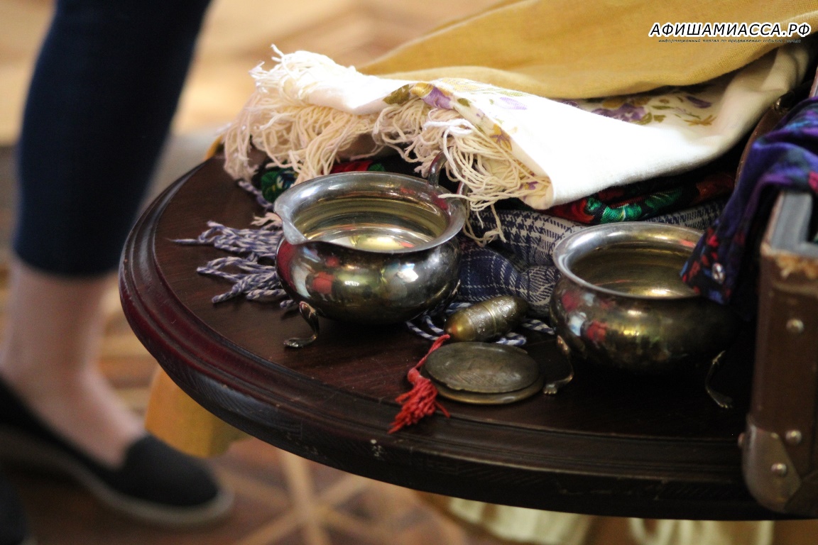 В субботу, 15 мая, миасский краеведческий музей в очередной раз присоединился к просветительской акции, которая прошла в тематике «Больше, чем музей». Для посетителей были организованы различные развлечения и интерактивы: гости могли поучаствовать в поединке с древними рыцарями, самостоятельно изготовить традиционную башкирскую куклу, послушать лекцию о достоянии Южного Урала – Аркаиме – и посмотреть фильмы, которые снимались в стенах музея. Одной из интересных площадок во время проведения акции «Ночи в музее» стал приём у купчихи с чайной церемонией. Организатором этой интерактивной площадки выступил коллектив филиала библиотеки Миасса № 16.